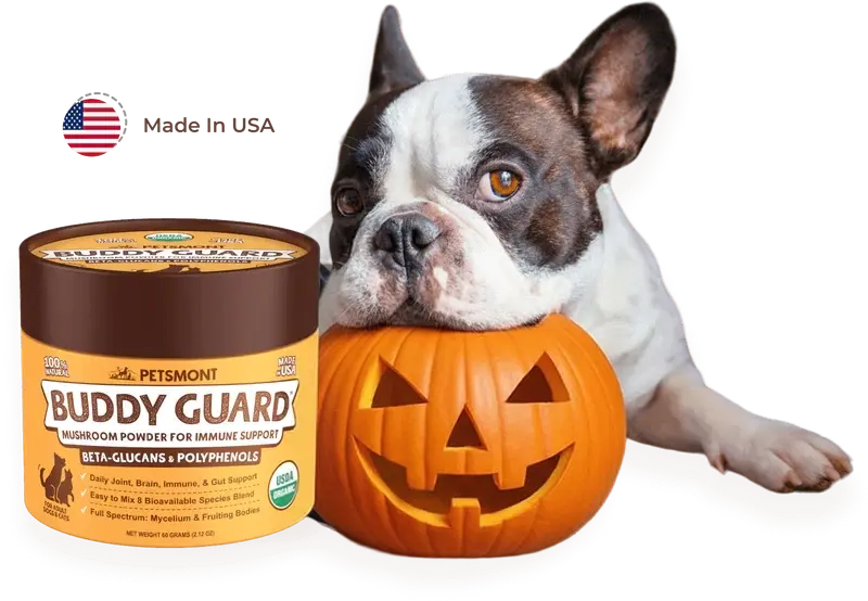 Petsmont Buddy Guard contains a proprietary blend of organic beneficial mushrooms